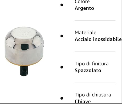 Mezza sfera, cuffia esterna in acciaio inox, corpo interno in acciaio massiccio, cilindro di sicurezza a 7 pistoncini, perno di bloccaggio con spina antitaglio